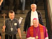 Gerber dankte den Frauen, Kindern und Männern, die mit ihm gepilgert waren, für dieses „starke Zeichen der Solidarität“. Das Weltjugendtagskreuz war von Jugendlichen auf dem Pilgerweg mitgetragen worden; am Ende des Weges trugen es auch der neue Bischof und sein Amtsvorgänger Bischof emeritus Heinz Josef Algermissen. Diözesanadministrator Weihbischof Prof. Dr. Karlheinz Diez, der Gerber und die Pilger im Dom willkommen geheißen hatte, erteilte im Dom den Segen mit der Bonifatiusreliquie. In Vorbereitung auf den großen Tag der Amtseinführung wurde im Dom auch eine Vigil gefeiert.